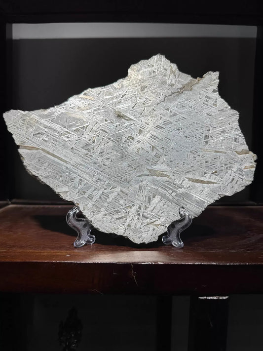 1506g Muonionalusta Meteorite Slice, Sweden, Widmanstätten Pattern, Polished Iron Meteorite Display