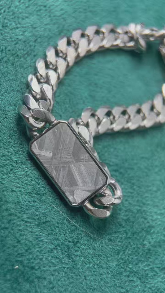 Muonionalusta Meteorite Bracelet – Fine Octahedrite from Sweden – 18 × 12 mm Slice – 17–20 cm Bracelets– Certificate & Gift Box Included