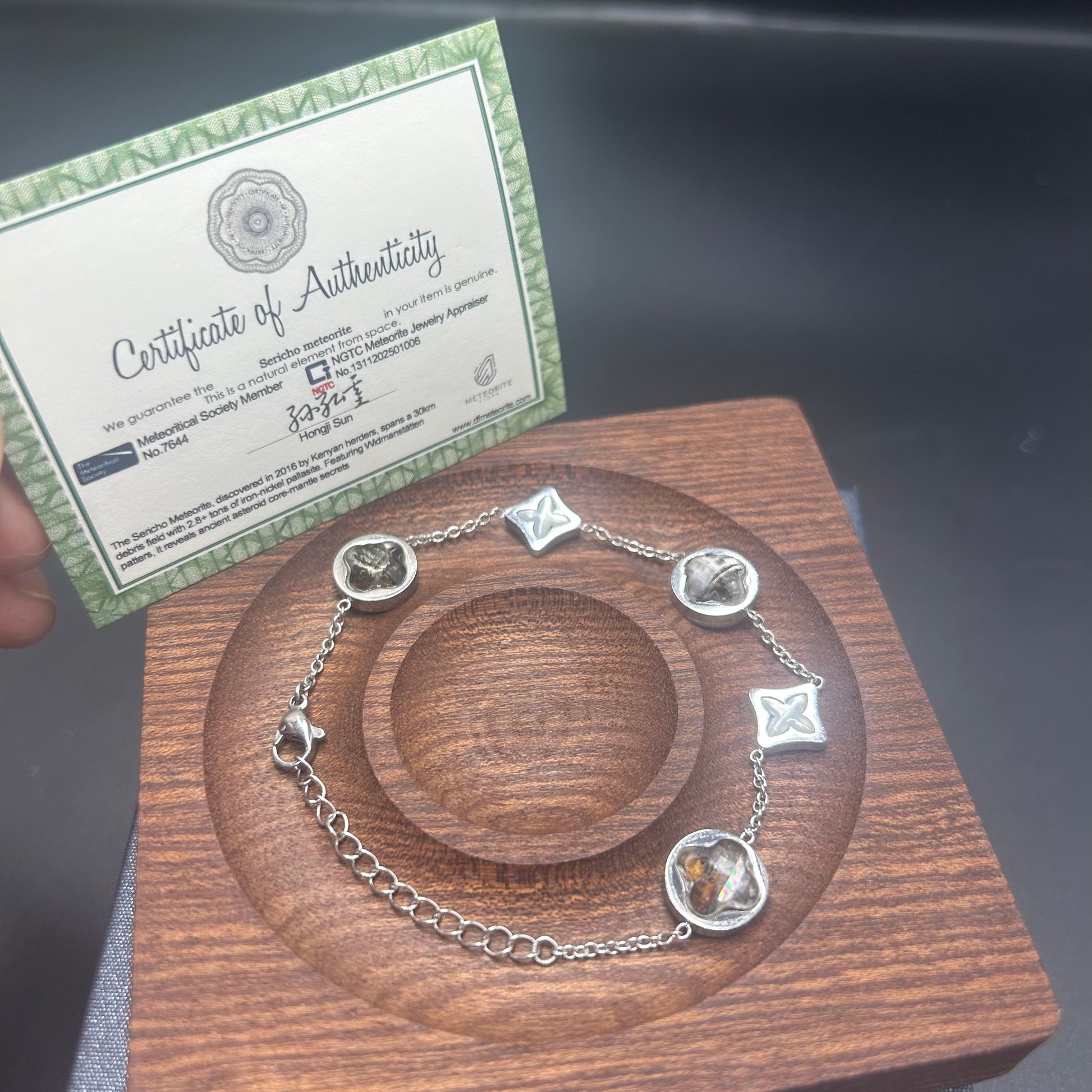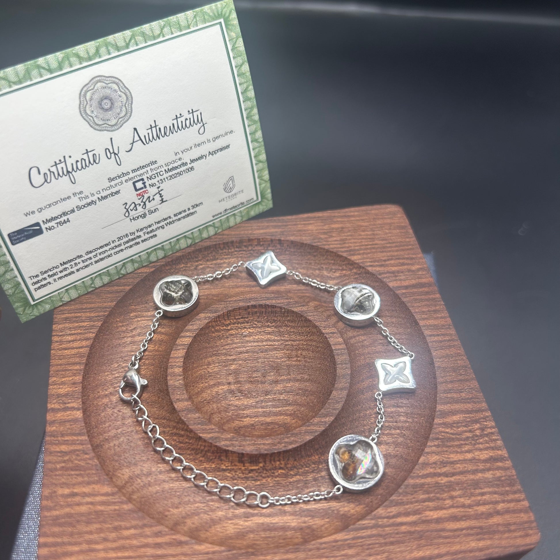 Kenyan Sericho Pallasite Meteorite-Inspired Adjustable Bracelet | Unisex | 17–20 cm Adjustable | Silver Tone with Cross Motifs | Gift-Ready