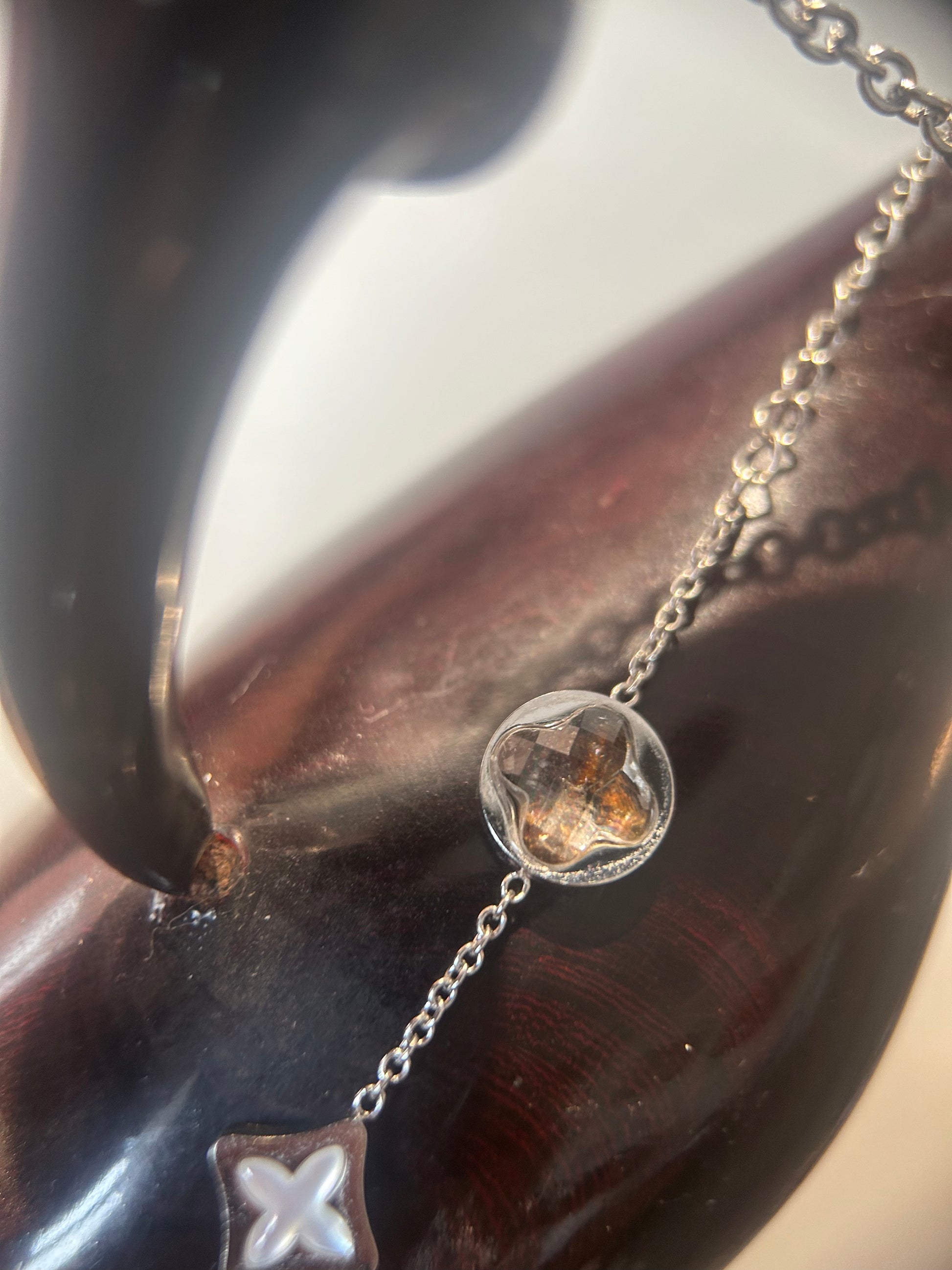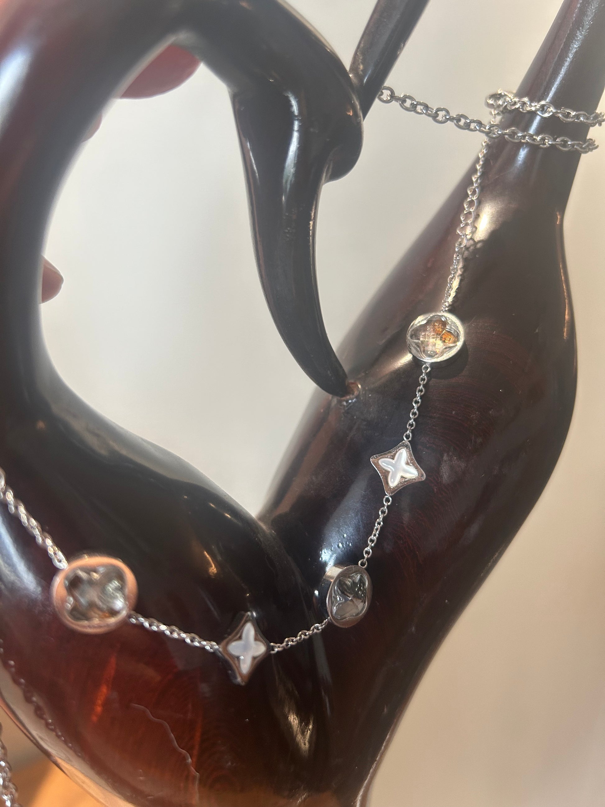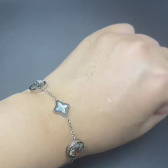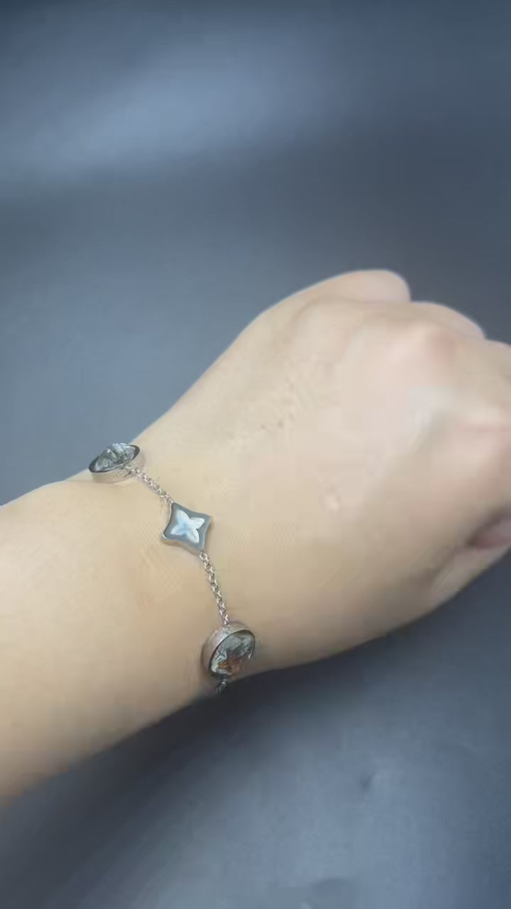 Inspired by the colors and rhythm of Kenya, this lightweight bracelet pairs domed glassy orbs with petite diamond-shaped cross accents along a bright silver-tone chain. Warm golden-smoke reflections shimmer inside the round elements, evoking sunlit sand and evening glow, while the cross motif symbolizes guidance, balance, and protection. A versatile, unisex piece for everyday wear and gifting.