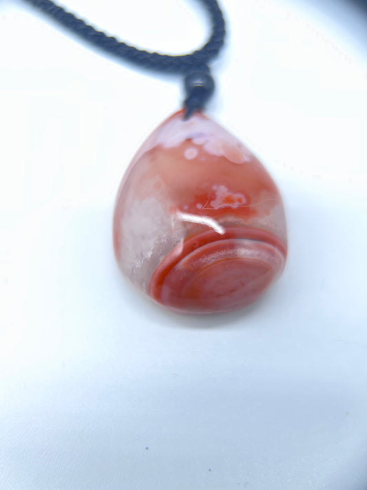 Unique Natural Red Agate Necklace – Sakura Blossom Pattern