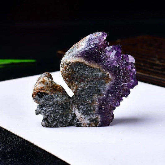 Uruguayan natural amethyst cluster squirrel ornaments Original stone carving home decorations