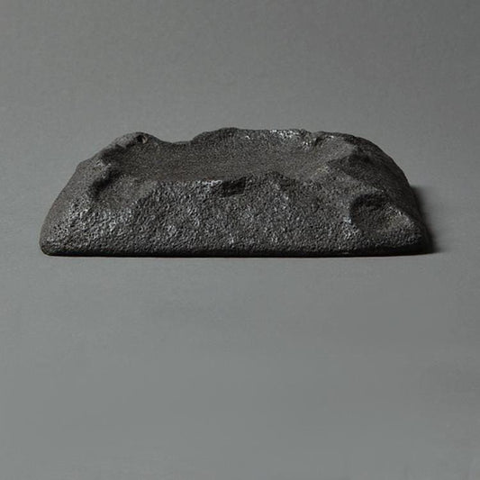 Unique blast crater, unglazed crackled surface black clay round bonsai pot, Mimic Meteorite Plate
