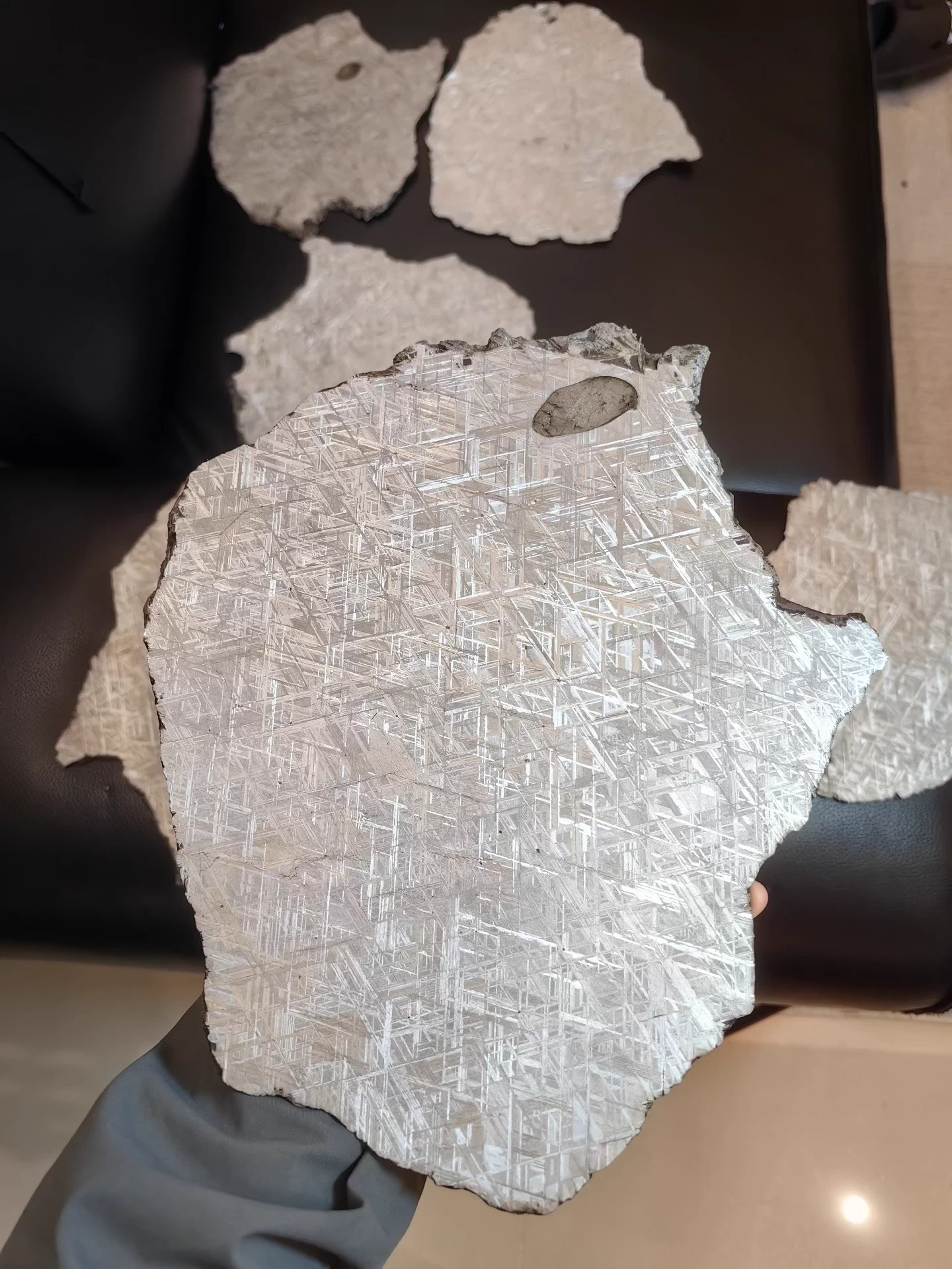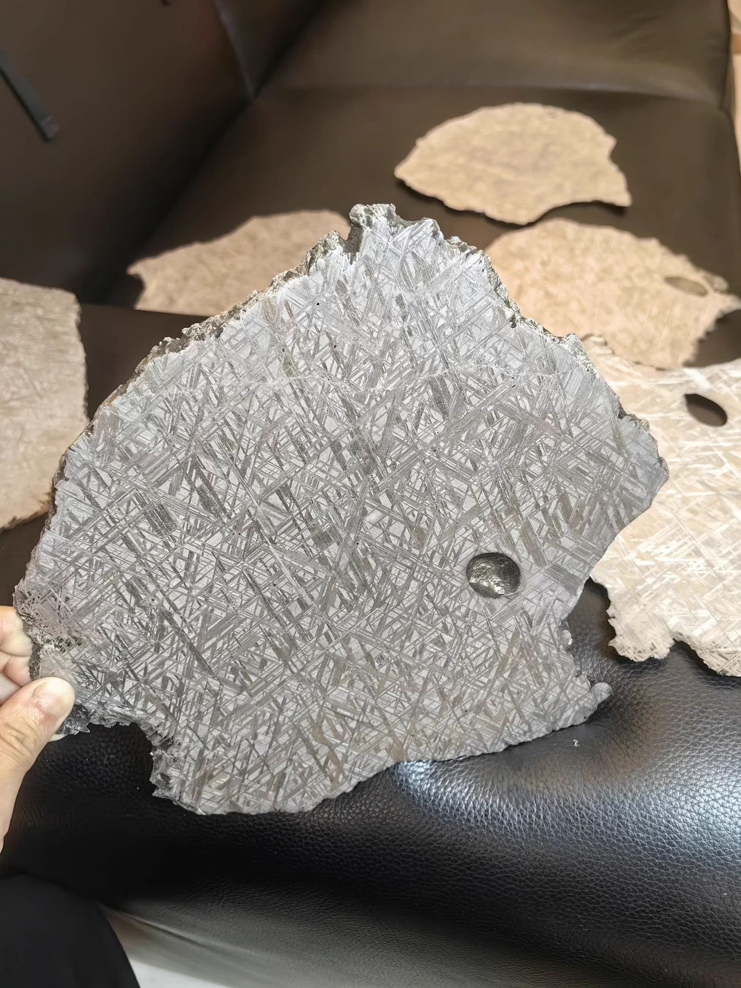 - Pattern: Classic, high-contrast Widmanstätten pattern across broad faces
