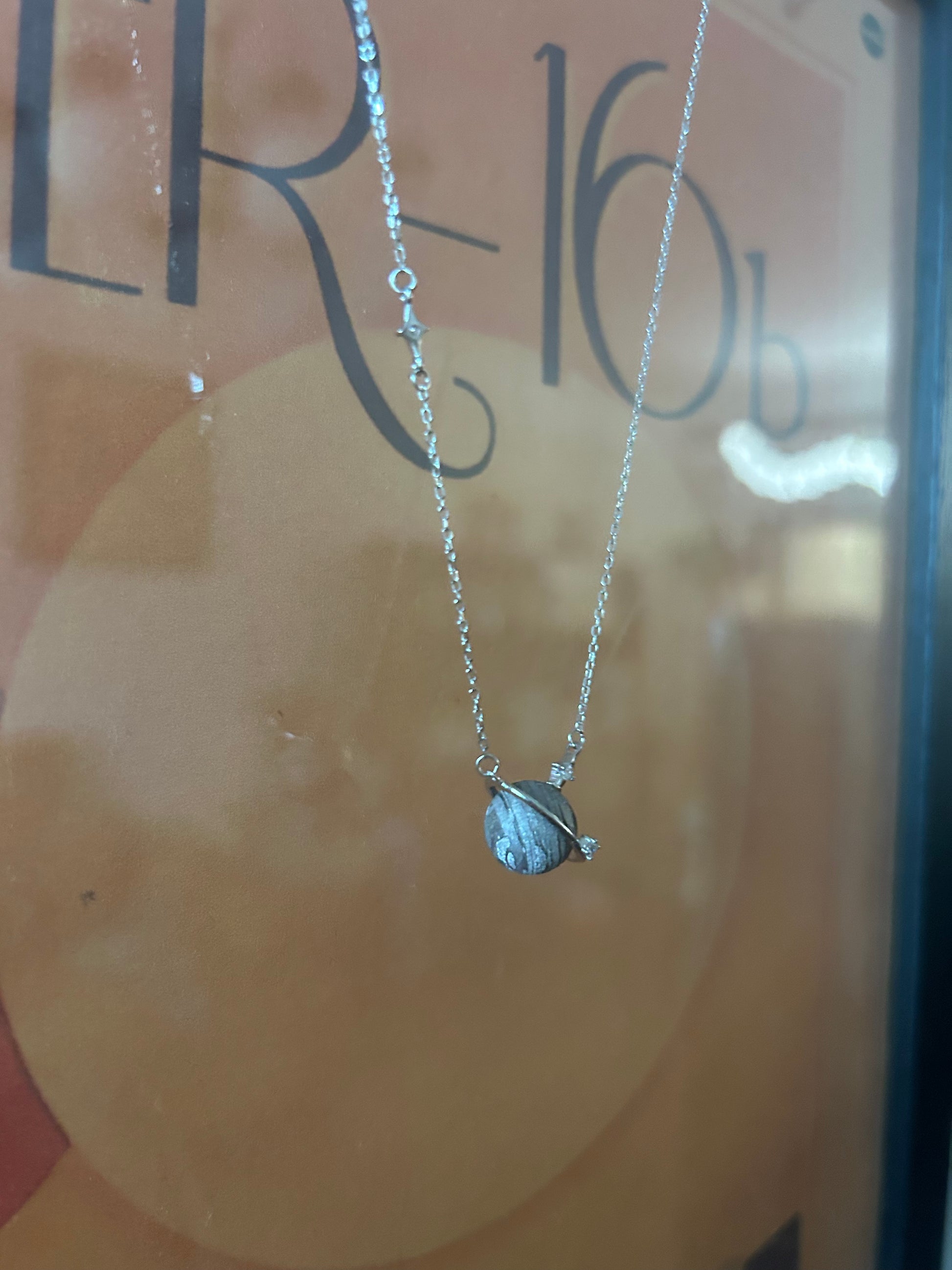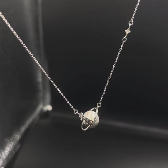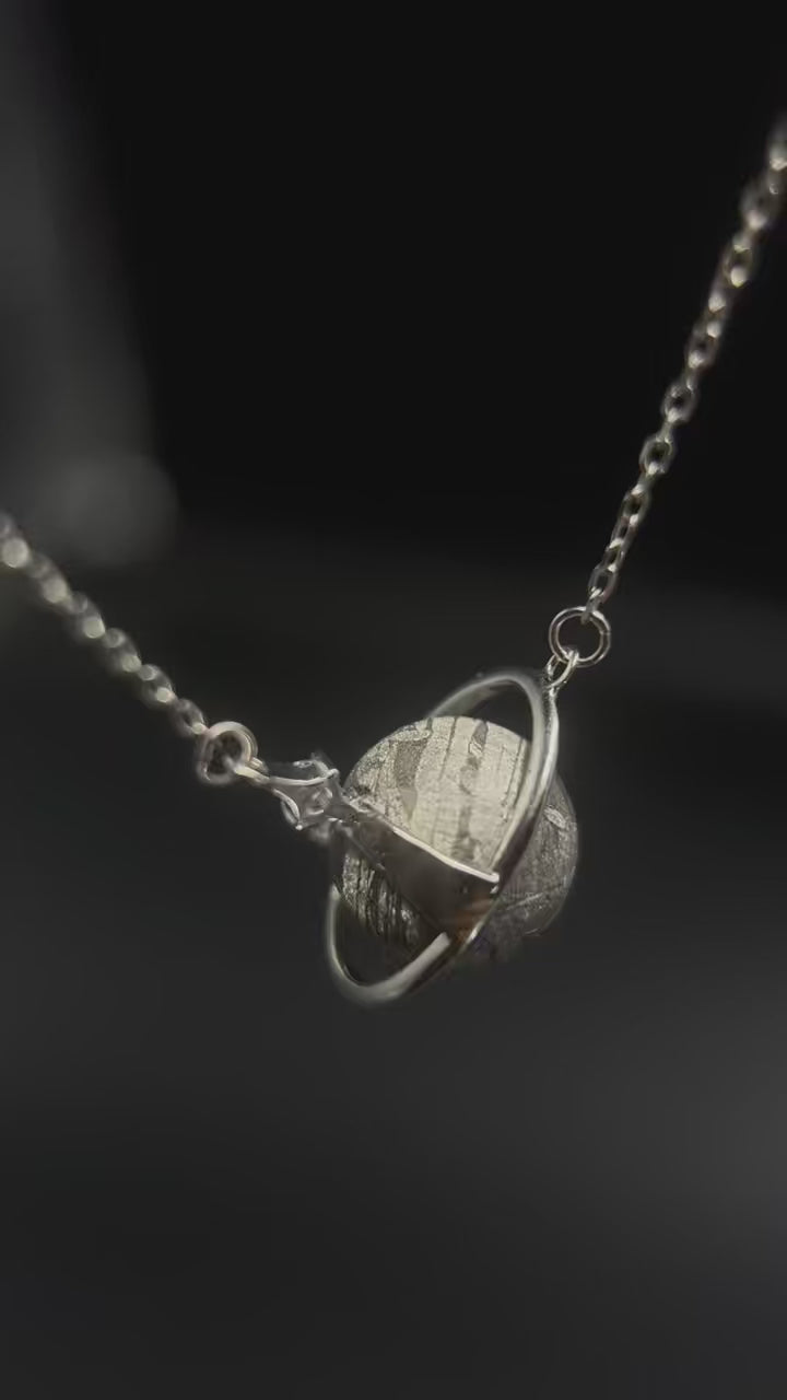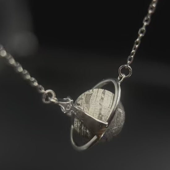 Altai Meteorite Necklace: 925 Silver Jupiter Rings Pendant, Christmas gift, Planetary Meteorite Necklaces
