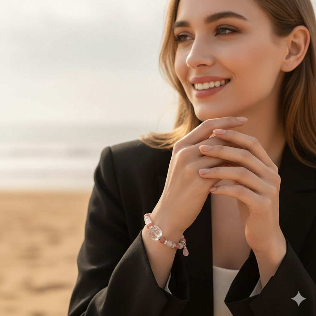 Genuine Gemstones: Made with authentic, high-quality Clear Quartz, Rose Quartz, and Strawberry Quartz beads.