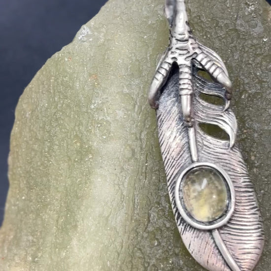 Libyan Desert Glass Eagle Feather Necklace • 925 Sterling Silver Feather • High-Transparency Gem • Handcrafted Talisman of Cosmos